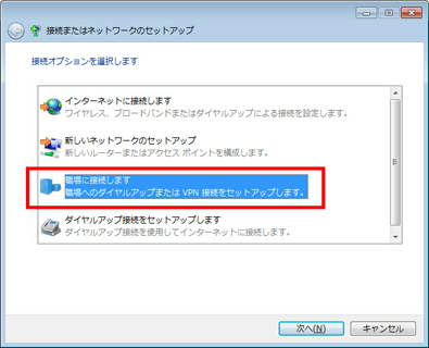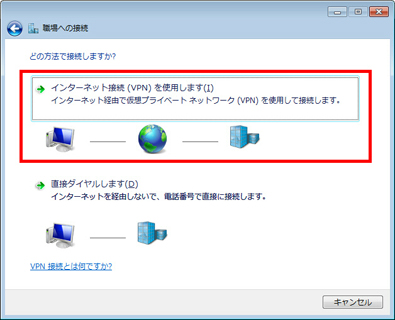 「インターネット接続 (VPN) を使用します」を選択します。