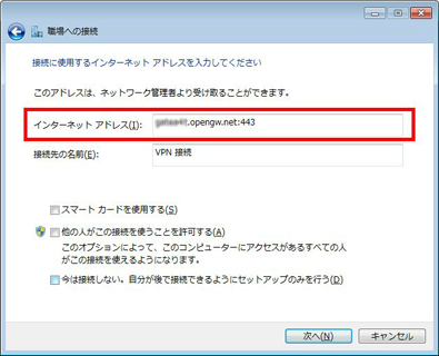 で接続する場合のホスト名」 (.opengw.net